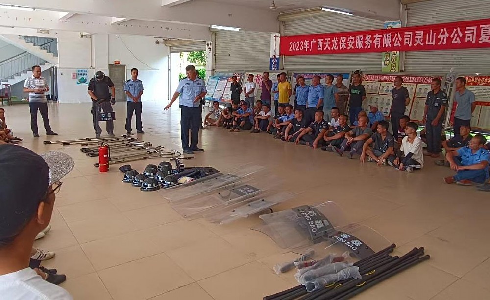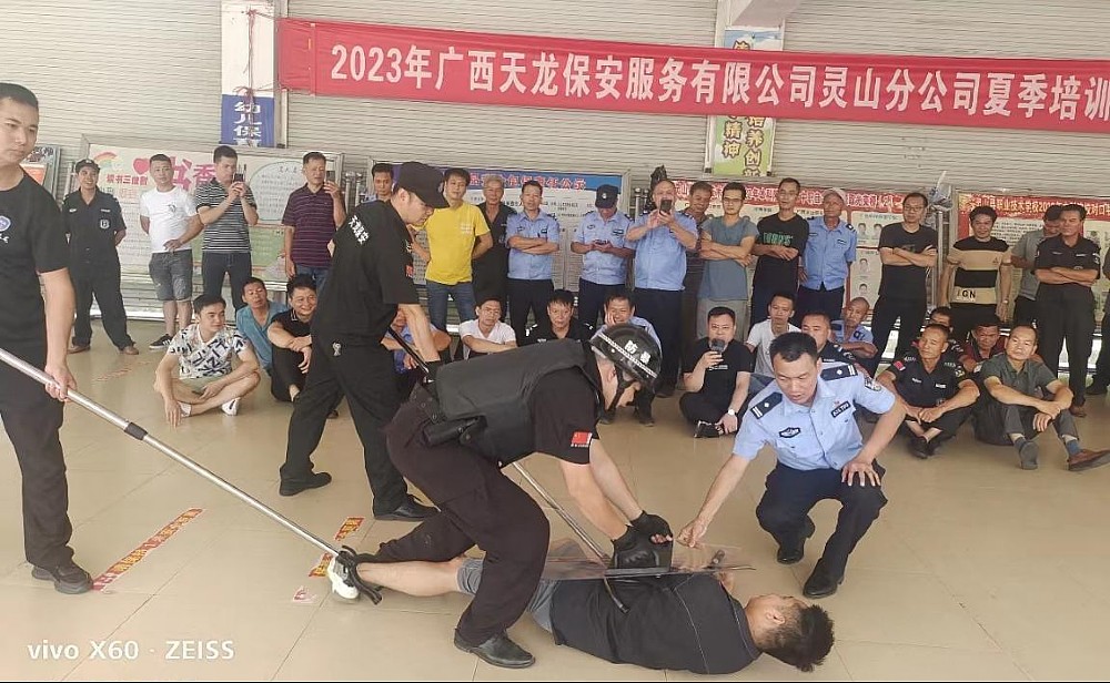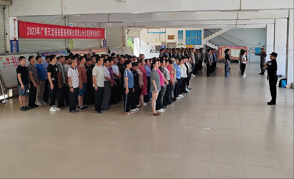 為全面提升靈山縣保安隊伍的專業(yè)素質(zhì),更好地服務社會、服務全縣人民,近日,靈山縣公安局治安管理大隊和廣西天龍保安服務有限公司靈山分公司在靈山縣職業(yè)技術(shù)學校聯(lián)合舉辦暑期保安員培訓活動。靈山縣各中小學校、民辦幼兒園、看護點、校外托管培訓機構(gòu)在崗保安員以及其他企事業(yè)單位保安員接受了培訓。靈山縣公安局治安管理大隊、三海派出所、廣西天龍保安服務有限公司靈山分公司等單位有關(guān)領(lǐng)導出席培訓活動,同時派出多名教官進行授課指導。